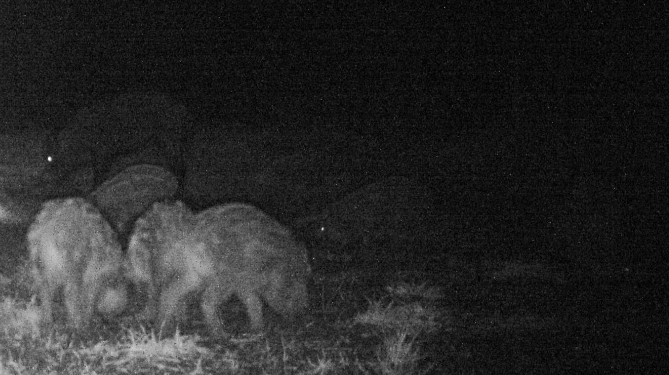 Vi gör ett schema med 2-4 man varje kväll och jag och jaktkompisen Kim som bor nära varandra ger oss först ut en tisdagkväll. Vi åker ut som vid pürsch en timme innan solens nedgång som är strax efter nio men får senare erfara det oftast inte händer nåt förrän precis innan det är kolsvart, dvs nästan en h efter solnedgången, Vi sätter oss i var sin ände och njuter av den fina majkvällen. Kim får tidigt nåt att fokusera på och följer en gris i kanten av fältet länge. Jag ser honom på avstånd och undrar varför han inte skjuter. Det visar sig att Kim smugit länge längs ett djupt krondike för att komma i bra läge men blir väldigt överraskad när han inser att ett gäng kultingar har varit med hela tiden i skogskanten utan att han sett dom förränn precis när han står som närmast och skall till att skjuta, hela tiden i tron att det varit en ensam gylta. Jag som omväxlande sitter och smyger i andra änden av fälten och inte sett nånting är precis på väg att ge upp och går mot bilen på väg att tända pannlampan när jag ser en hel klunga svarta profller alldeles nära bilen i ett av hörnen närmast en av våra viltrikaste såtar. Plötsligt står dom där och när jag får syn på dom inser jag att det bara är några få minuter tills det är alldeles svart, brått att komma i läge, bestämma vad det är för djur och eventuellt kunna skjuta om ljuset är tillräckligt.