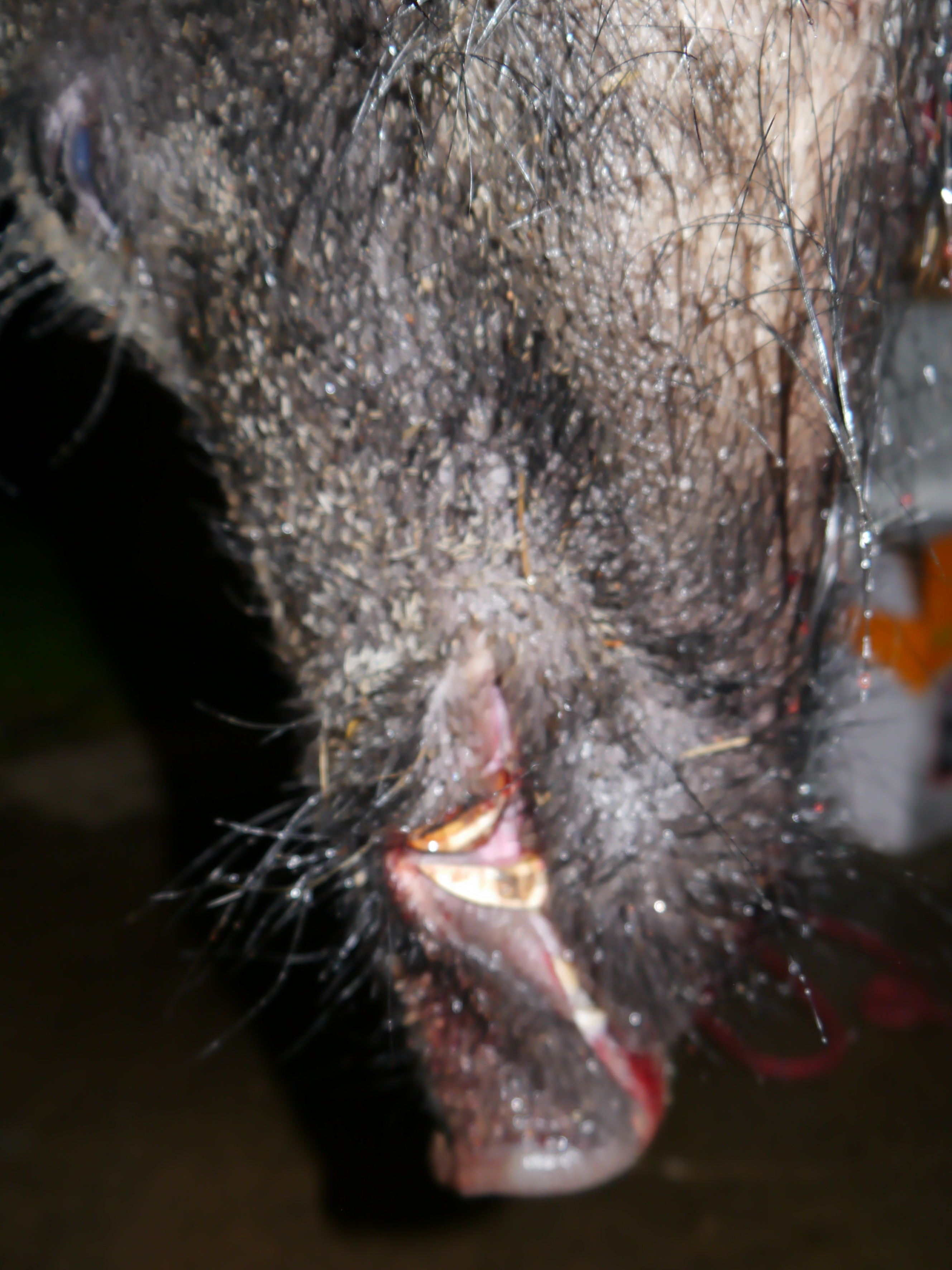 Väl i slakthuset väger vi den till modiga 95kg urtagen, troligen kring 125 levandevikt, en rejäl reva i baklåret och en bete borta vittnar om nyligt slagsmål med nåt troligen ännu större. På vänstra bogen hittar vi en konstig knöl precis under skinnet? Där sitter en perfekt expanderad Oryx precis under skinnet, 8.57an har lämnat kvar absolut all energi den hade på dryga 30 m och stannat precis under skinnet på utsidan av bogen…inte så konstigt att den vart på plats. Min största galt hittills och en skön känsla att skjuta rätt djur och göra ett bra jobb med skyddsjakten. Men återigen jag jag fått lära mig hur svårt det är att se konturer och bedömma storlek. Även på så kort avstånd som jag valde för att vara säker så bedömde jag storleken väldigt fel!
