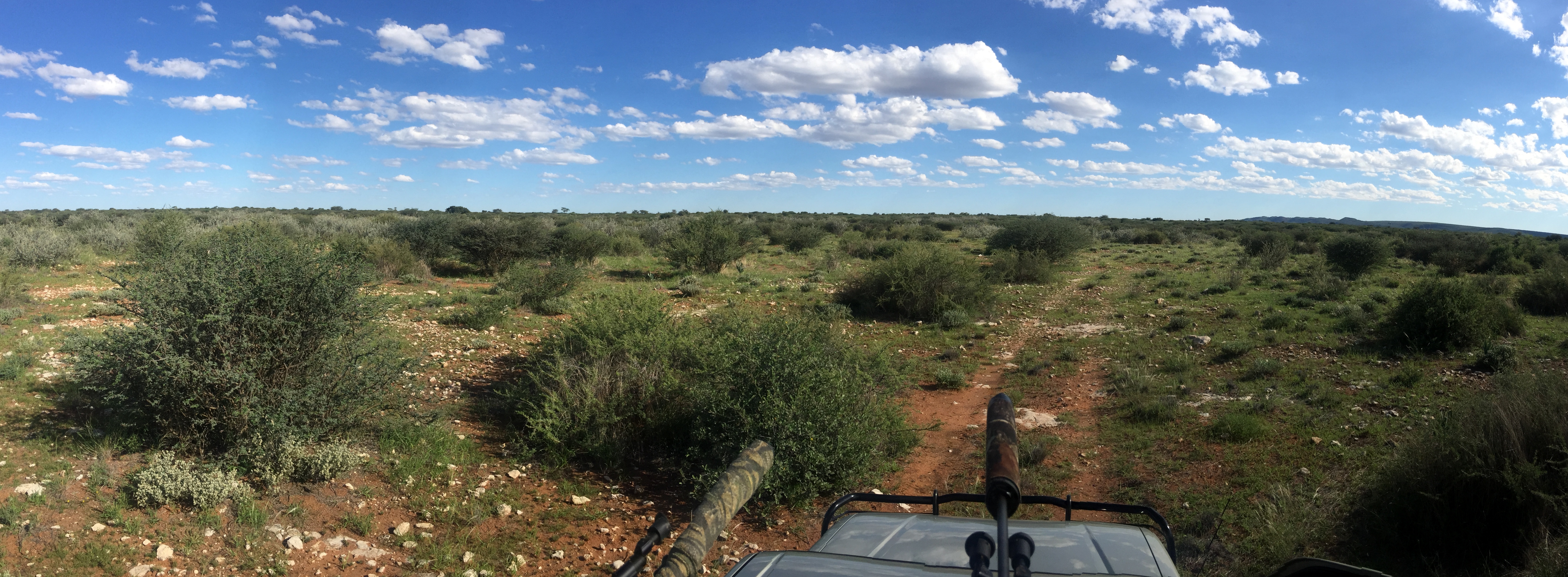 Direkt efter skjutbanan ger vi oss redan denna första dag ut för att mjukstarta jakten den sena eftermiddagen, ingen tid att förlora! Vi sitter upp på bilarna med våra PH ger oss ut på marken för att lära oss omgivningarna, se vilt och jaga om vi får tillfälle. Ingen av oss har varit i Afrika och jagat förut och allt är nytt, växtlighet och djurliv liknar förstås ingenting vi är vana vid och ögonen är stora, kikarna får jobba och de första dagarna studerar man extra vetgirigt allt som rör på sig och naturen med sin mestadels buskhöga, torra – karga växtlighet. Alla växter har små blad för att behålla vätska i värmen och många av buskarna är taggiga och vassa att gå för nära, den värsta ”waitabout” har hullingar som fastnar och går in djupare och man försöker gå förbi utan att lyda den… vänta en stund, dra ut taggen eller helst respektfullt undvika dess grenar.