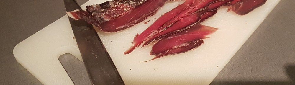 Jag har rökt kött under många år och tycker att jag börjar lära mig en del, men det finns mycket kvar… jag har definitivt fått stor respekt för priserna i charkdisken! Sen länge har jag velat prova att torka då det ger en dimension till, både vad gäller smak, hållbarhet/förvaring och att det är kompakt och lätt att ha med sig när man är ute.